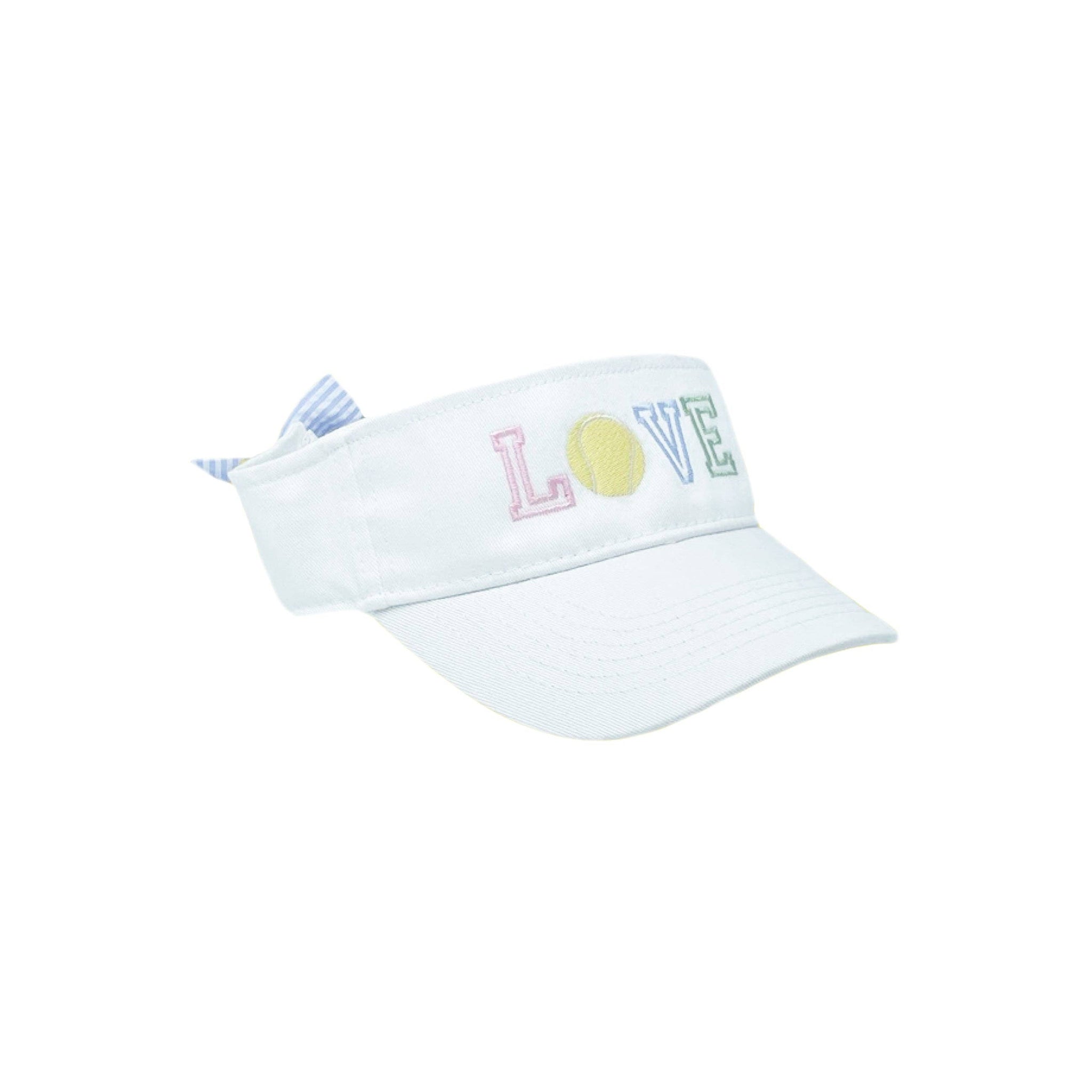 * Each visor is adorned with a seersucker blue/white seersucker bow